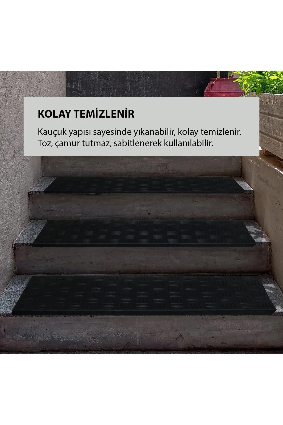 Güvenli tasarım: Lateks kaymaz taban özelliği sayesinde zemine sıkıca tutunur, merdivenlerde ve giriş alanlarında kayma riskini minimuma indirir.